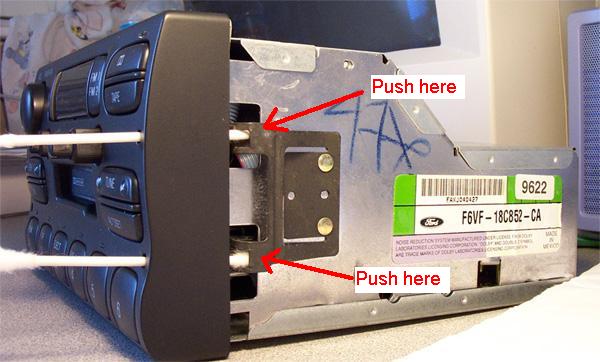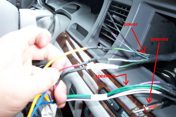 As you can see from the picture, there are two small holes on each side of the factory head unit, you can make two cloth hanger to "U" shape. and put them into the hole at same time, apply some force to the center, then you can take the head unit out At the back of the head unit, you can see two wire connections, I hope you can match them from the Wire Code diagram provided by Scosche(R).